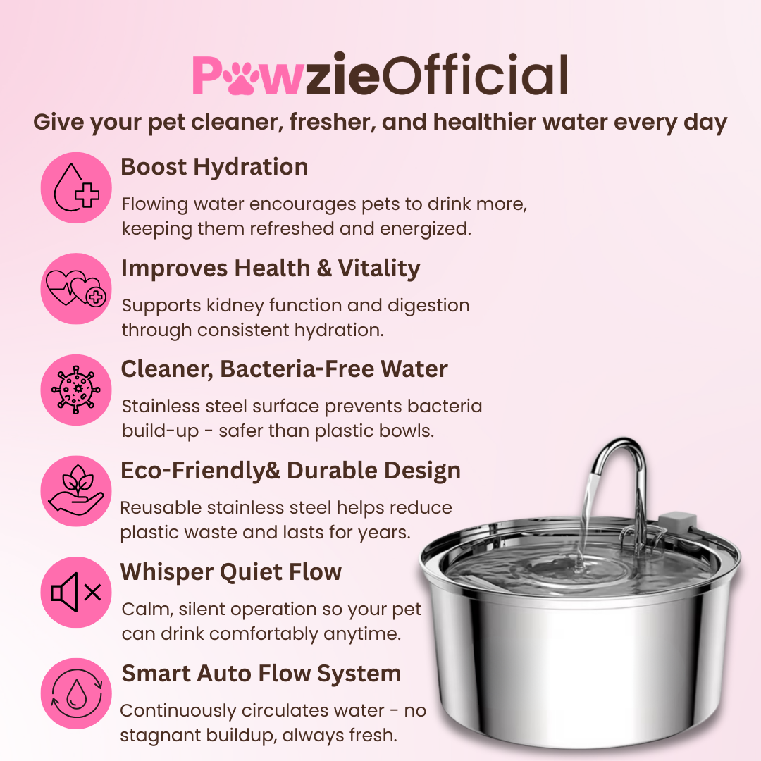 Plastic bowls can trap bacteria and odors. PawzieOfficial’s stainless steel fountain delivers cleaner, fresher water your pet deserves every sip, every day.